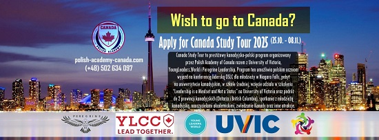 Canada Study Tour to prestiżowy kanadyjsko-polski program organizowany przez Polish Academy of Canada razem z University of Victoria, Young Leaders. World and YLCC. Program ten umożliwia polskim uczniom wyjazd na konferencję liderską GSLC dla młodzieży, pobyt na uniwersytecie kanadyjskim, wzięcie udziału w szkoleniach na University of Victoria oraz podróż do Vancouver, Toronto, Niagara Falls, spotkania z młodzieżą kanadyjską, nauczycielami akademickimi oraz inne atrakcje.